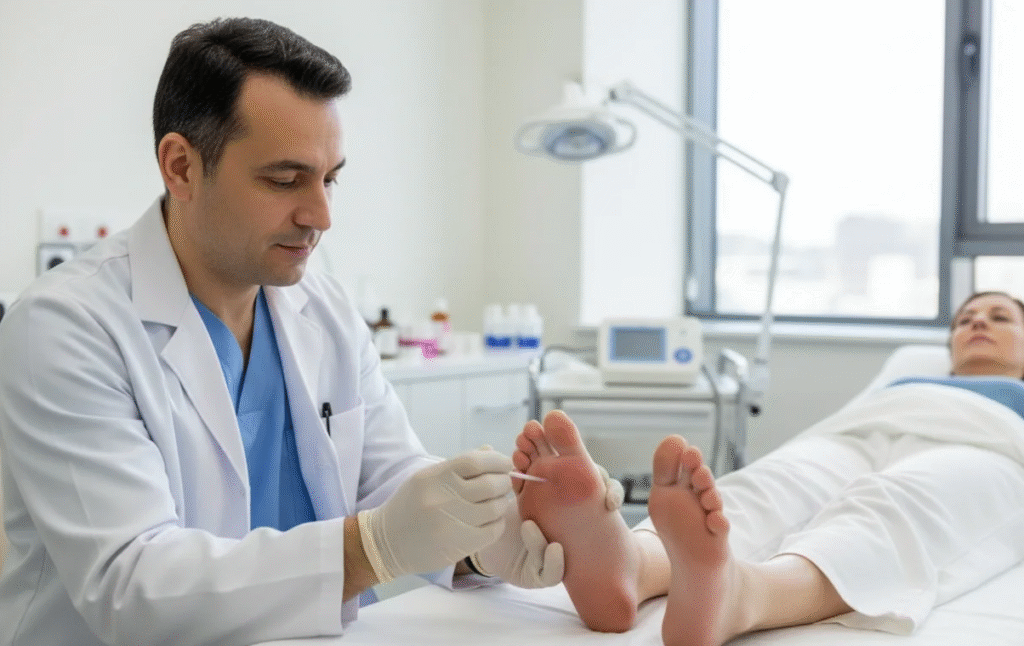 بررسی بالینی نخستین گام ارزیابی زخم پاشنه است و شامل مشاهده دقیق رنگ، بافت و حاشیه زخم میباشد. پزشک میزان ترشح، گرمی یا سردی پوست اطراف، تورم، بوی نامطبوع و وجود علائم نکروز را ارزیابی میکند. همچنین، حساسیت موضعی، درد هنگام لمس و واکنش پا به تغییر وضعیت سنجیده میشود. در بیماران دیابتی، بررسی حس با استفاده از تست مونو فیلامان برای تشخیص نوروپاتی انجام میشود. مشاهده پا در حالت آویزان و بالا برده نیز کمک میکند تا وضعیت جریان خون ارزیابی شود. این نگاه دقیق، مسیر را برای اقدامات تکمیلی مشخص میکند.